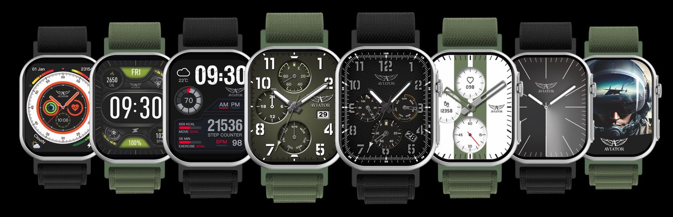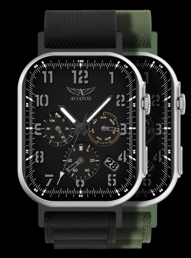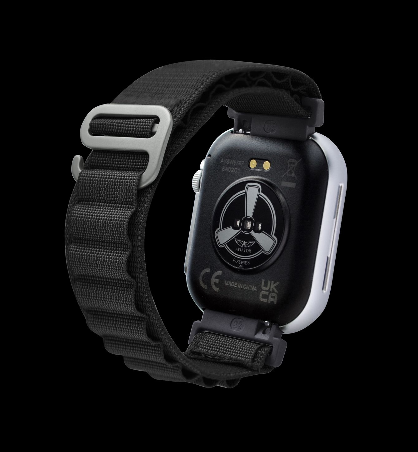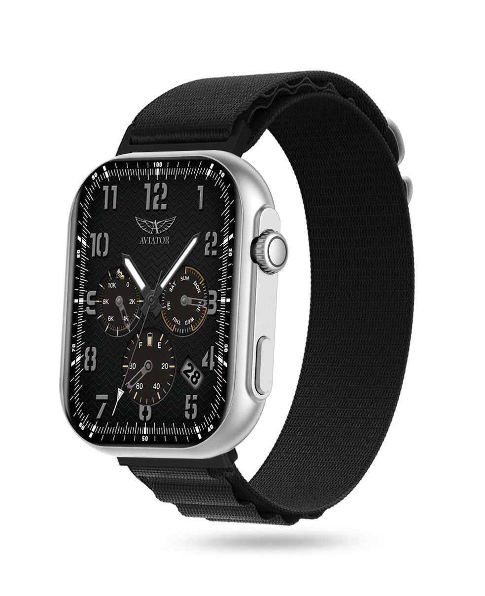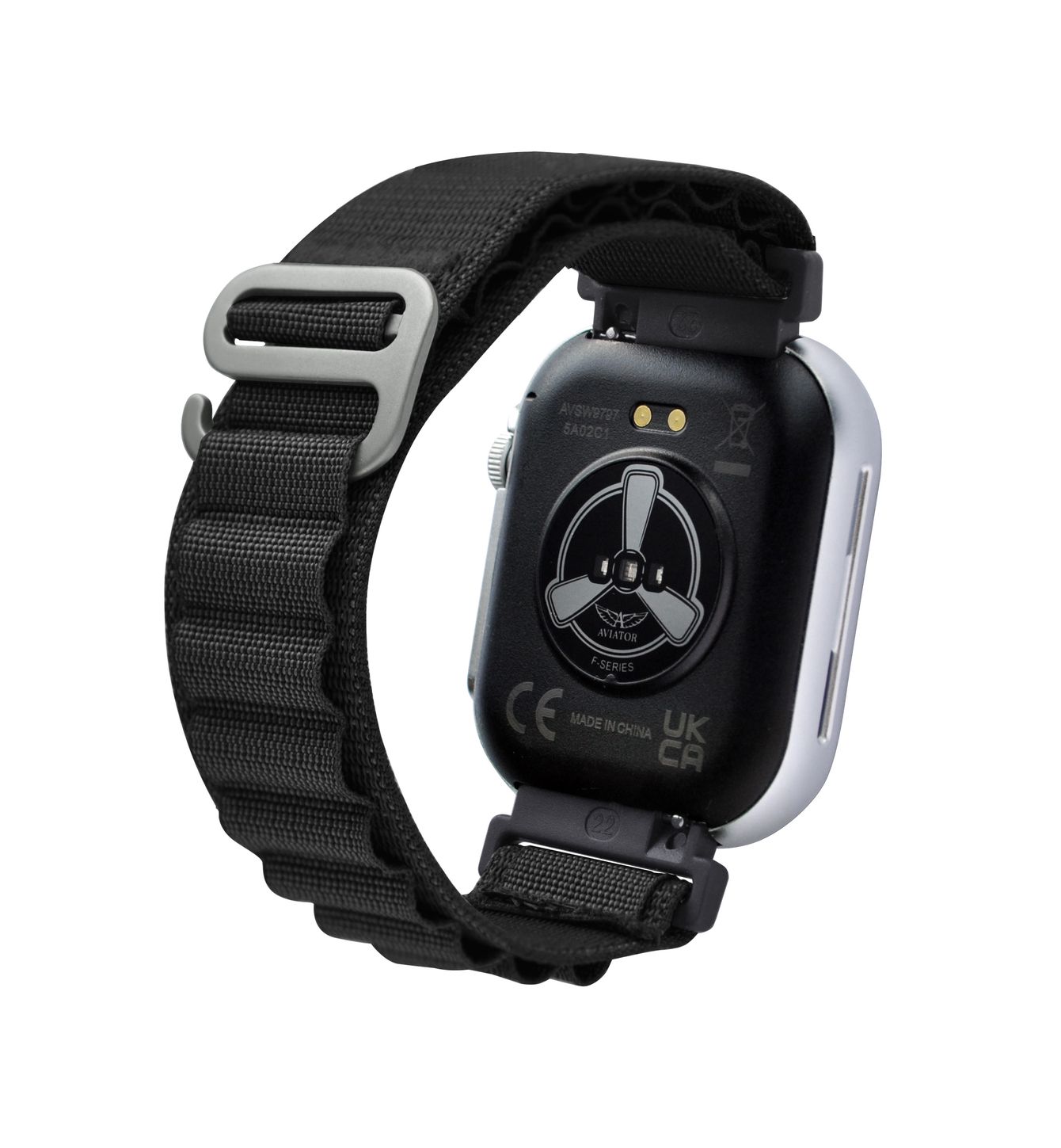 Sporty design meets smart functions: this Aviator F Series Aero Xtreme Gent’s Smart Watch impresses with a 2.01” touch screen, 450 nits brightness, digital rotating crown and extra nylon strap. Choose from 250+ cloud based dials. Features: wireless charging, health monitoring, exercise tracking.