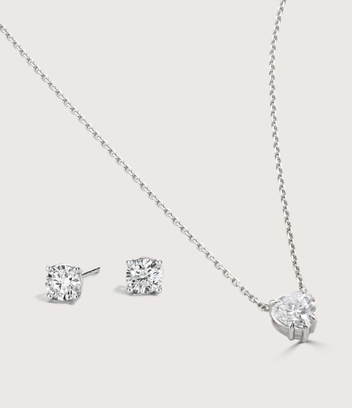 Celebrate love and elegance with the Claw Set Heart Pendant Necklace and Stud Earrings from the Buckley Luxe Collection. Crafted from premium sterling silver, this delicate necklace features a brilliant heart-cut simulated diamond, secured in a classic claw setting for maximum sparkle and sophistication.