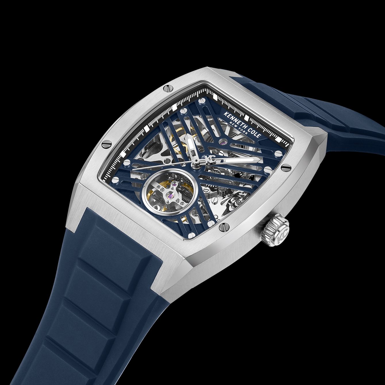 Featuring a blue see-through dial with stainless-steel case, the watch is nothing but a bold contemporary statement. Powered by automatic movement and completed with finely crafted silicon strap in blue, it blends precision engineering with effortless comfort and durability, making it a perfect choice for those who lead with style.