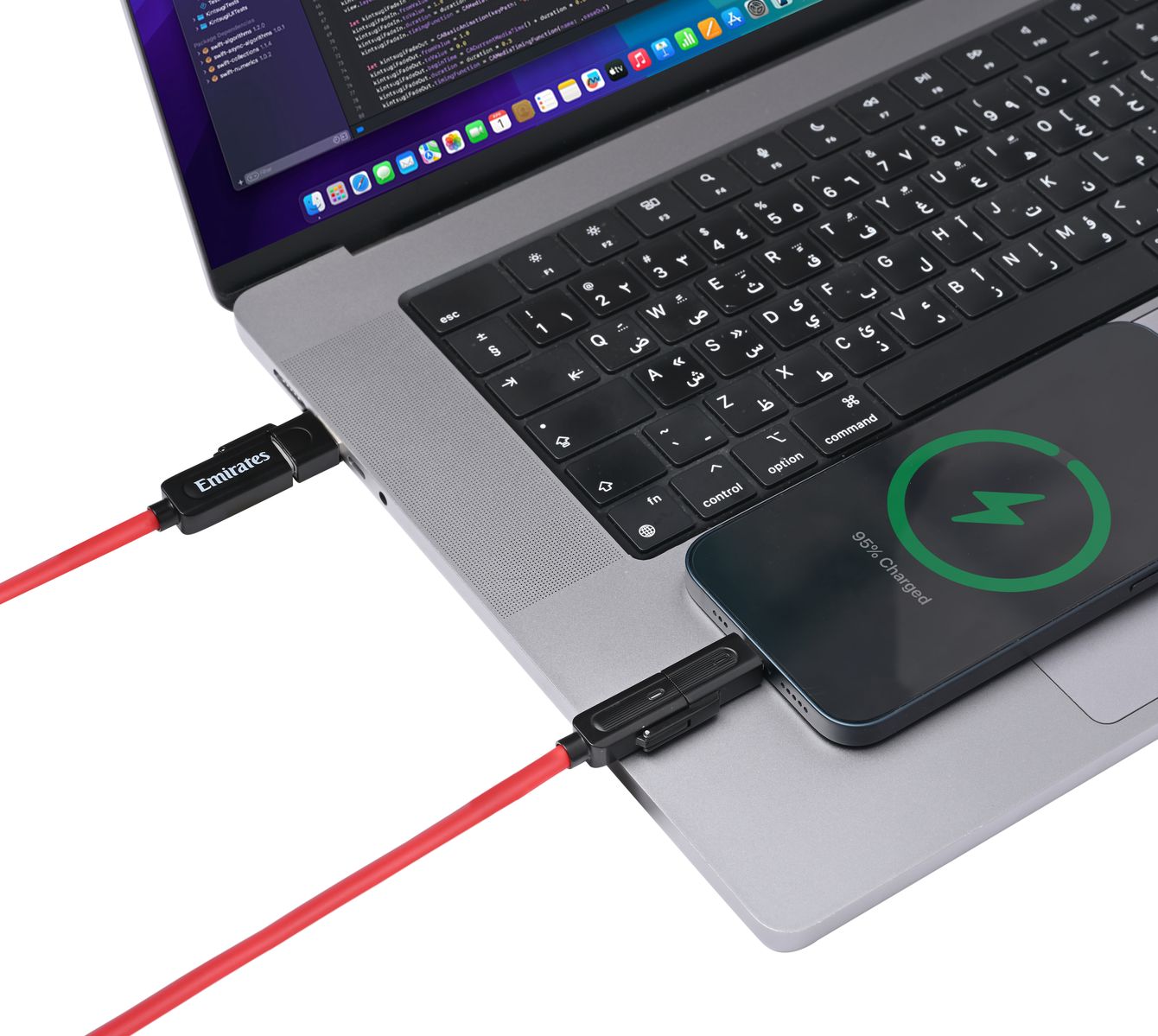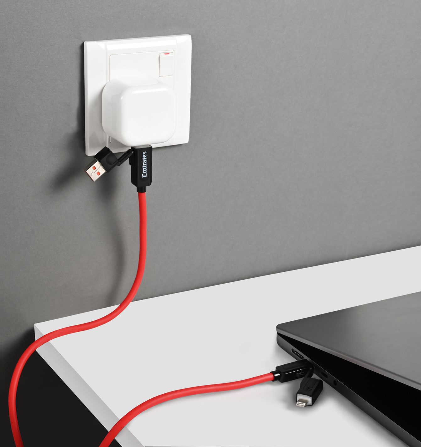 Power or charge various devices simultaneously with this durable 4-in-1 cable. It combines USB-C to Lightning, USB-C to USB-C, USB-A to USB-C, and USB-A to Lightning ports into one, and can be used to transfer data between devices. It features 100W fast charging, an LED indicator light, rust-proof construction, and a generous 1-metre (3.3 feet) length.