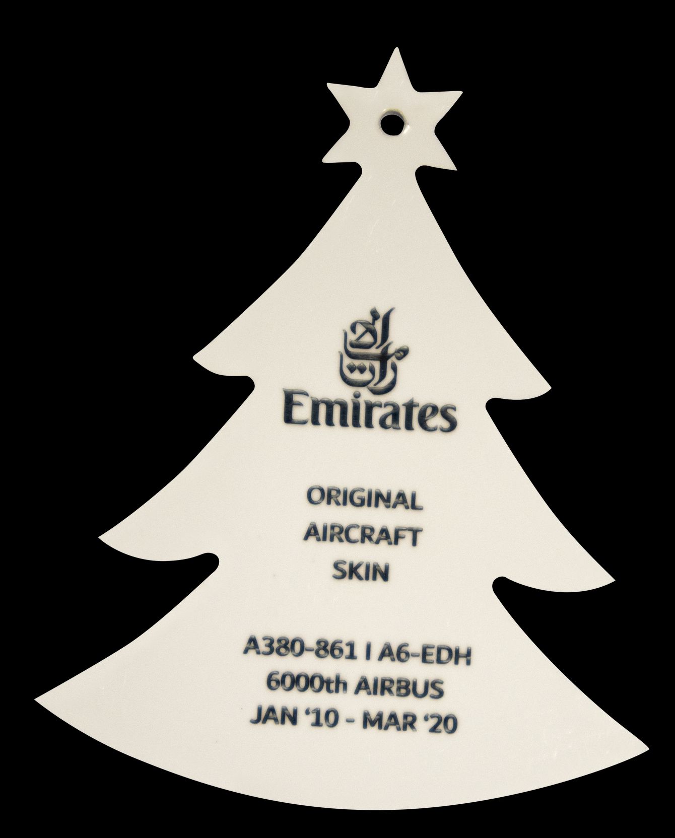 Crafted from one of Emirates’ now retired A380’s fuselage, these limited edition tree decorations are made especially to celebrate the Christmas season. Available in Christmas tree design, and feature the name of the aircraft and its service dates on the back.