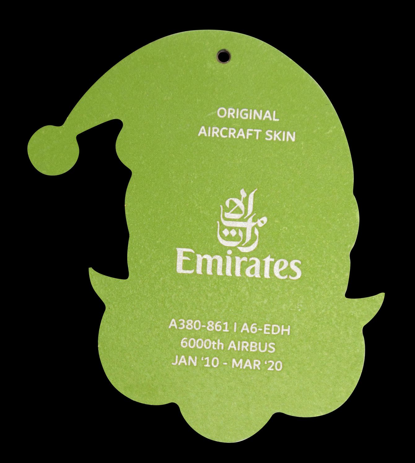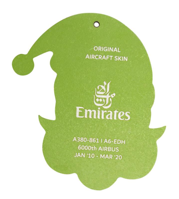 Crafted from one of Emirates’ now retired A380’s fuselage, these limited edition tree decorations are made especially to celebrate the Christmas season. Available in Santa Claus design and feature the name of the aircraft and its service dates on the back.
