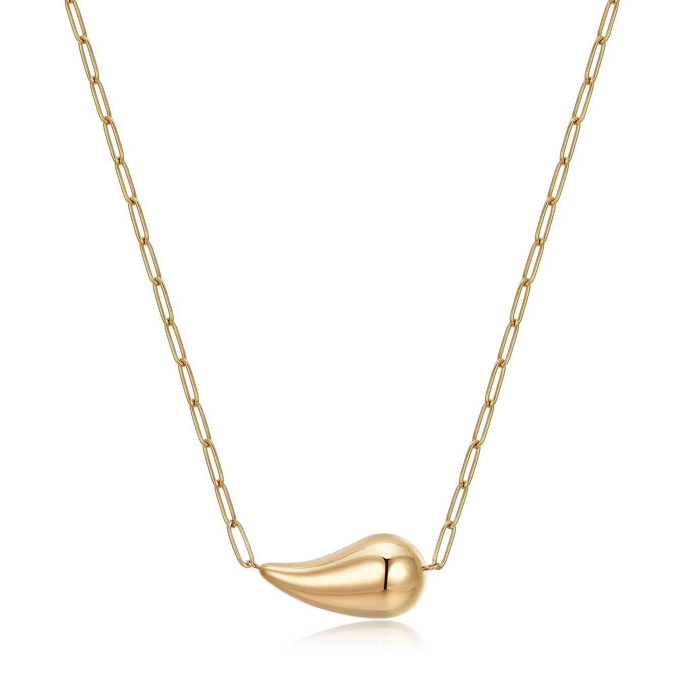 Add a dash of understated chic to your outfit with this jewellery set. A tarnish-resistant, gold-plated raindrop pendant adorns an Italian-style paper clip chain (45cm). There is also a pair of matching stud earrings. The pieces are perfect worn alone, but even better when paired together.