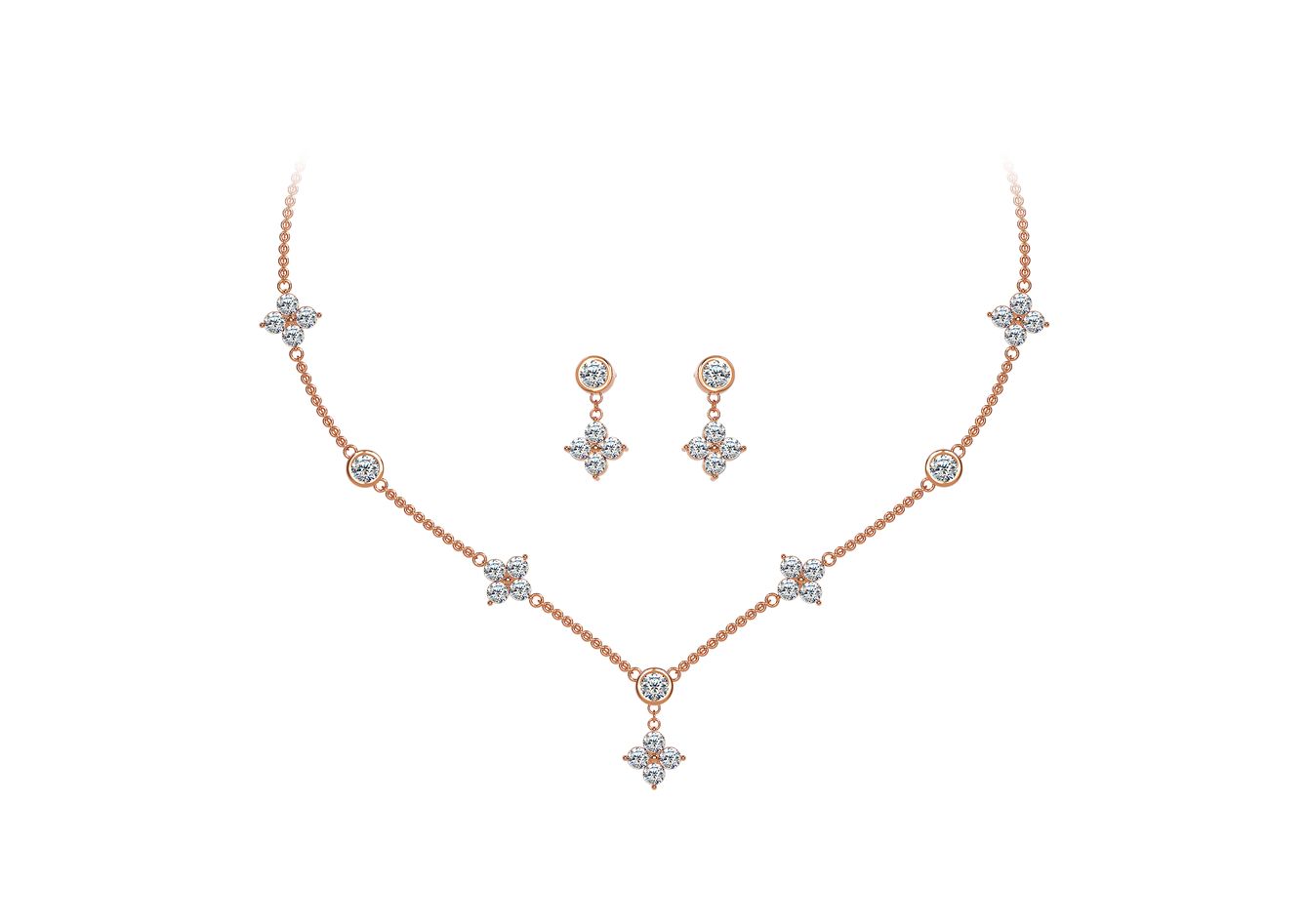 This beautiful set is like a hidden treasure, the sparkling crystals are simply irresistible and a rose gold tone adds a touch of timeless sophistication to any outfit, whether you're keeping it casual or dressing up for a special occasion. The necklace elegantly graces the neckline, while the matching earrings bring an extra layer of sophistication to your look. This set comes in a lovely gift box with a one-year warranty. With this beautiful set, you'll definitely sparkle wherever you go!