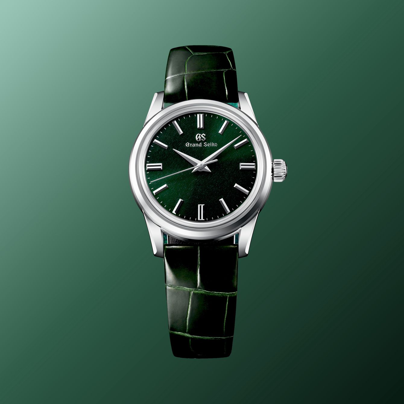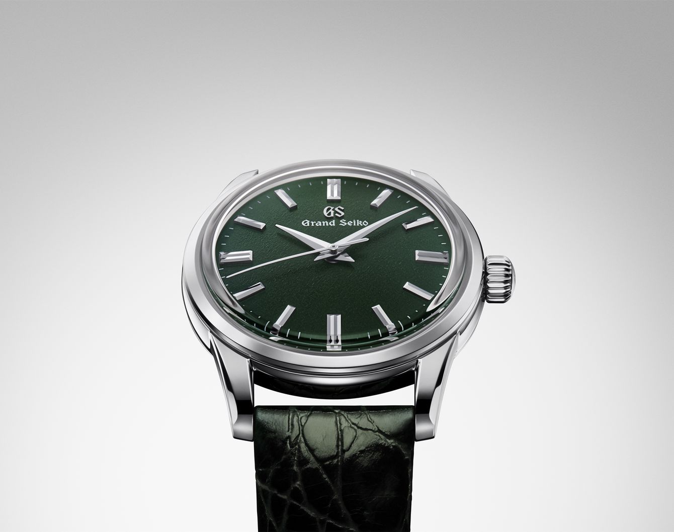The dial is deep green in color and is inspired by Byōka, which marks the transition from summer to autumn. The first morning dew appears and the wind feels cool against the skin. It is still the end of August but summer is short in Shizukuishi and the early signs of autumn are in the air. The green of the leaves on the trees is increasingly deep and, with its delicately textured surface, the dial reflects its own special beauty.