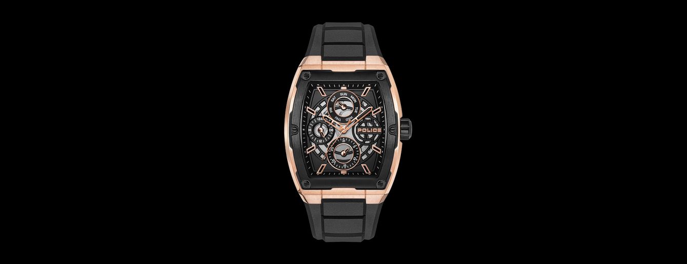 A symbol of audacity, this multi-functional watch features a transparent tinted charcoal dial with a brushed black radial finish, set in a unique tonneau-shaped case. It blends style and functionality in a bold design. Water resistance of up to 5 ATM. Two-year international warranty. 42mm