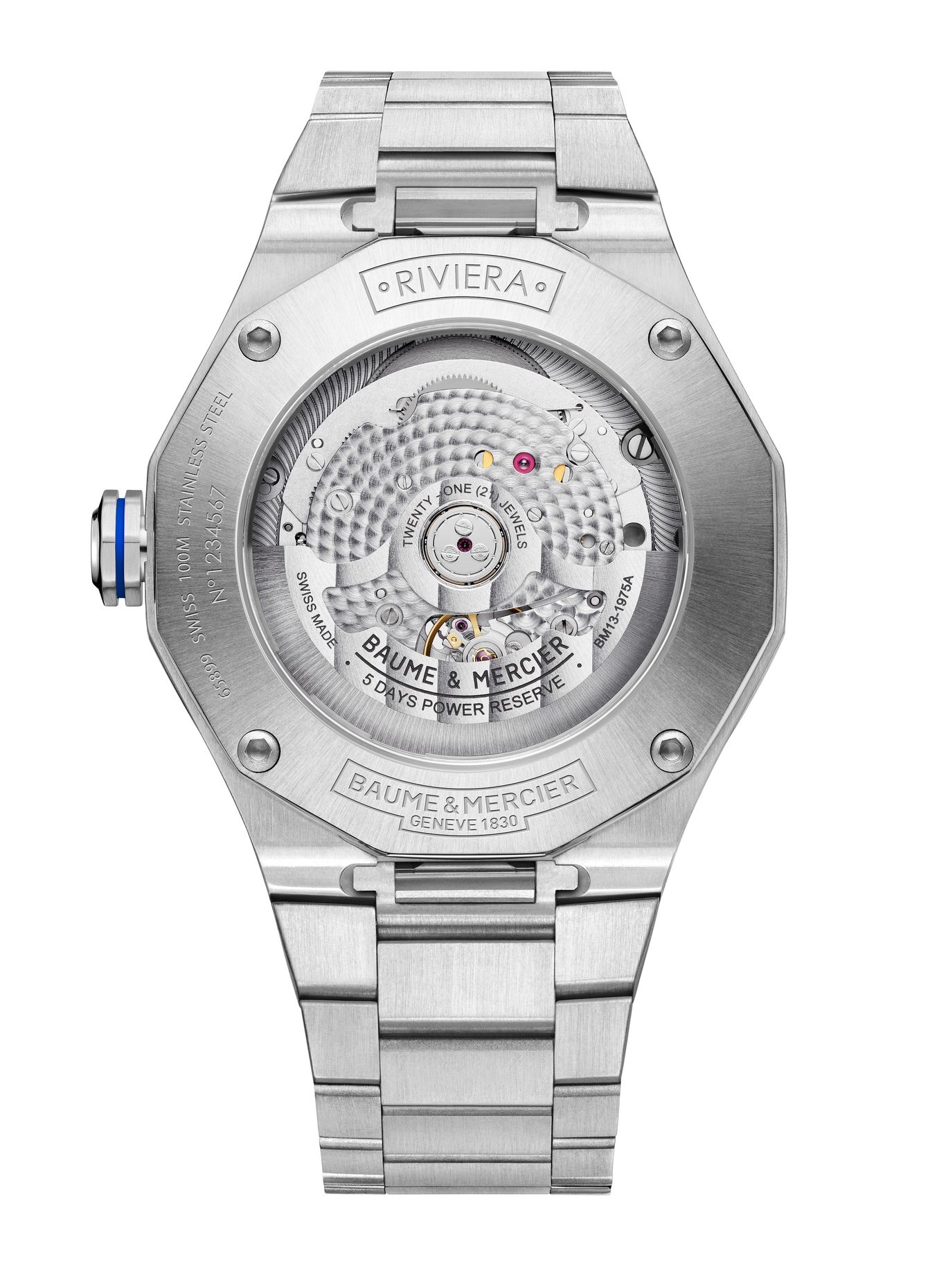 Driven by the prestigious Baumatic manufacture calibre, the Riviera 10616 is the all-road Swiss watch by excellence. Its transparent blue sapphire dial, its interchangeable metal bracelet and open caseback complete the sporty look of this "Swiss-Made" timepiece.