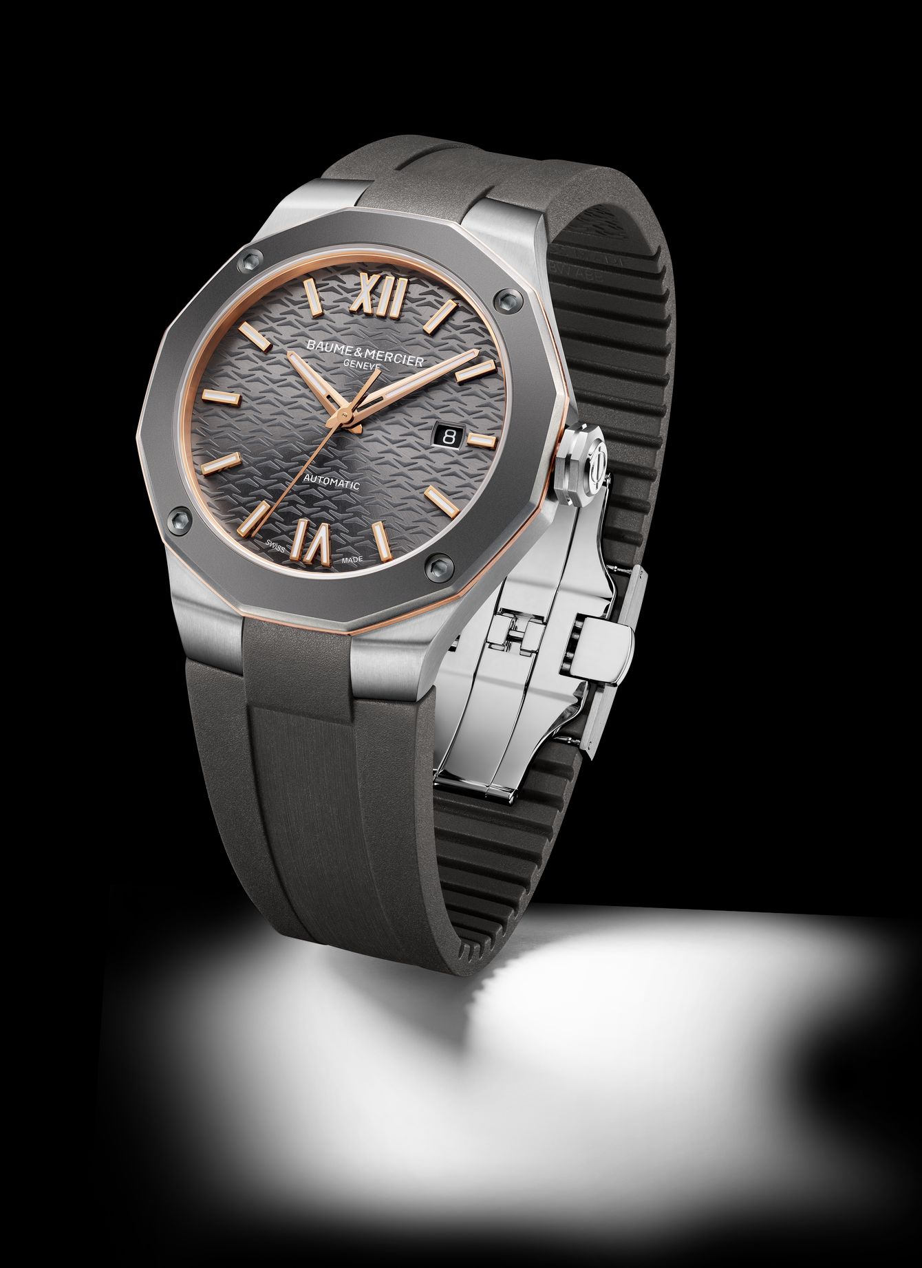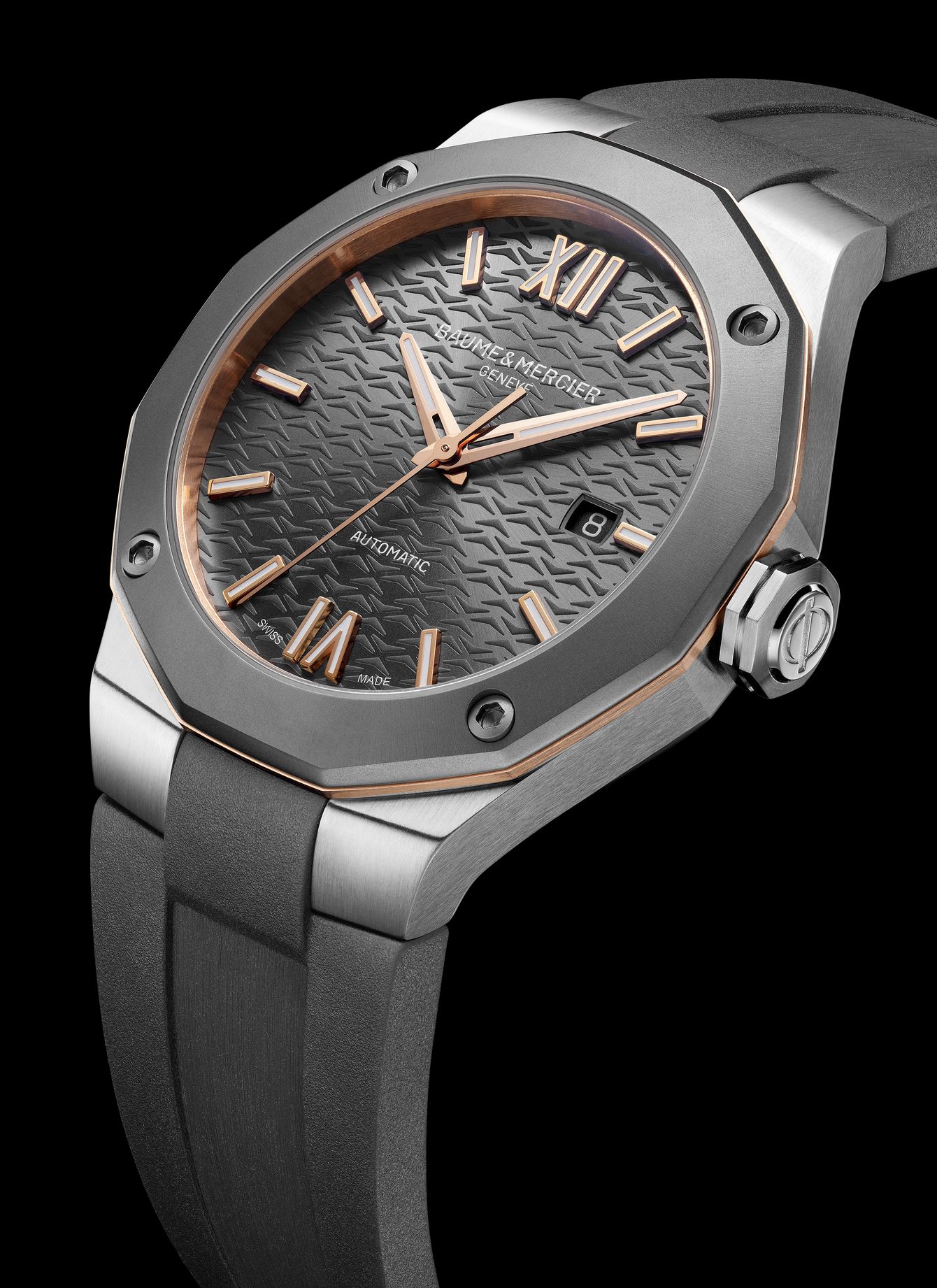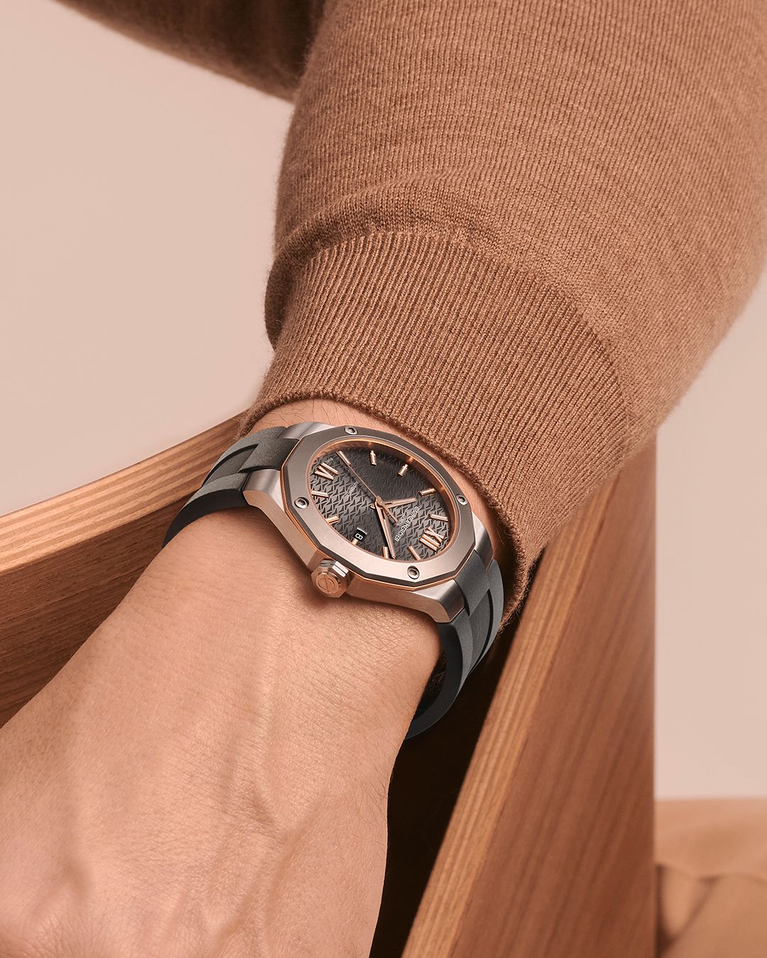 Sporty, dressy, casual, this Riviera is a multifaceted timepiece that will please many personalities. Equipped by a "swiss-made" automatic movement, the combination of its steel case, sandblasted titanium bezel and gilt ring brings boldness to this timepiece. The perfect choice for people looking for versatility.